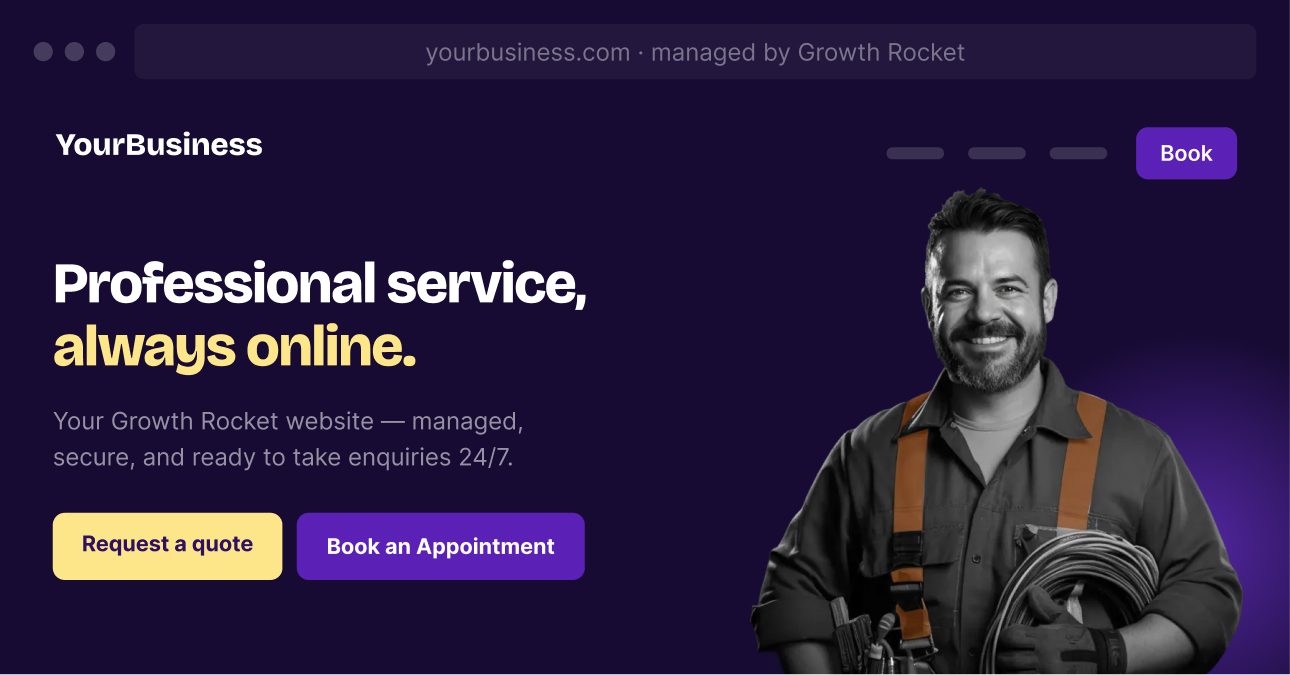 Your website, your enquiries, and your bookings — all in one managed system.Built for small businesses who want simple, not complicated.